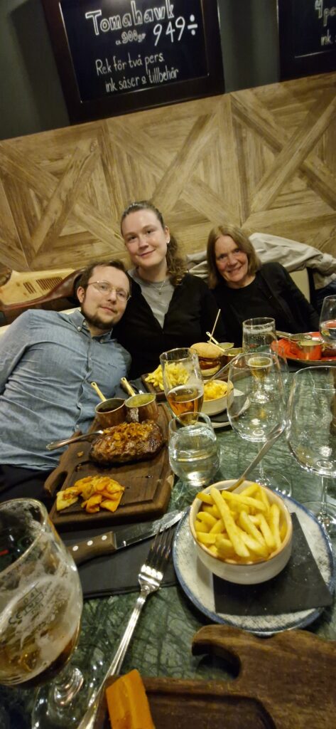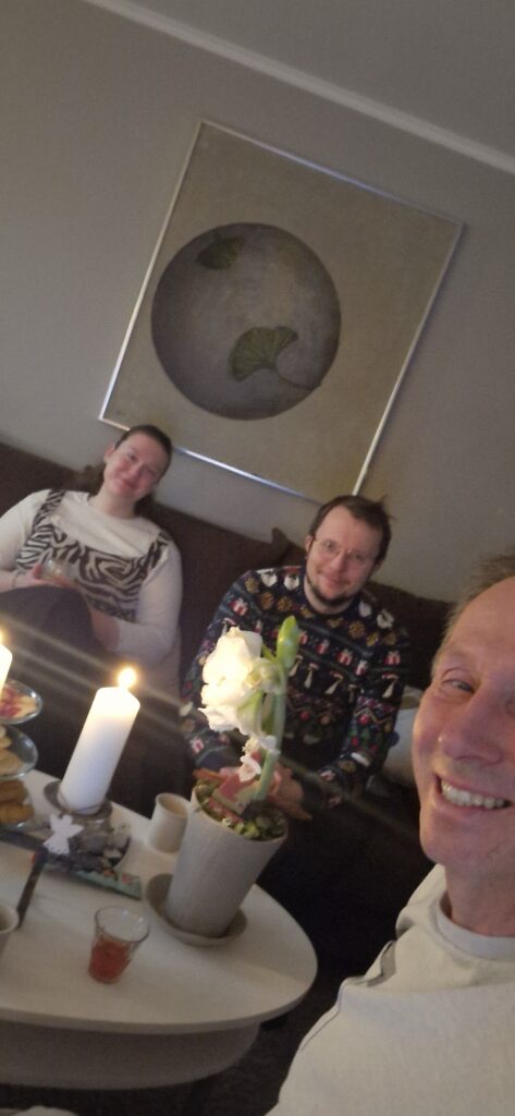 30:e November. Söndag. Multifys skivstång. Otroligt jobbigt. 1:a advent. Lunch hemma. Julmarknad längs Storgatan. Duggregn. Trevlig stämning. Adventsfika och sen film på projektorn. Mission: Impossible – The Final Reckoning. Lekte lite med AI-bilder.