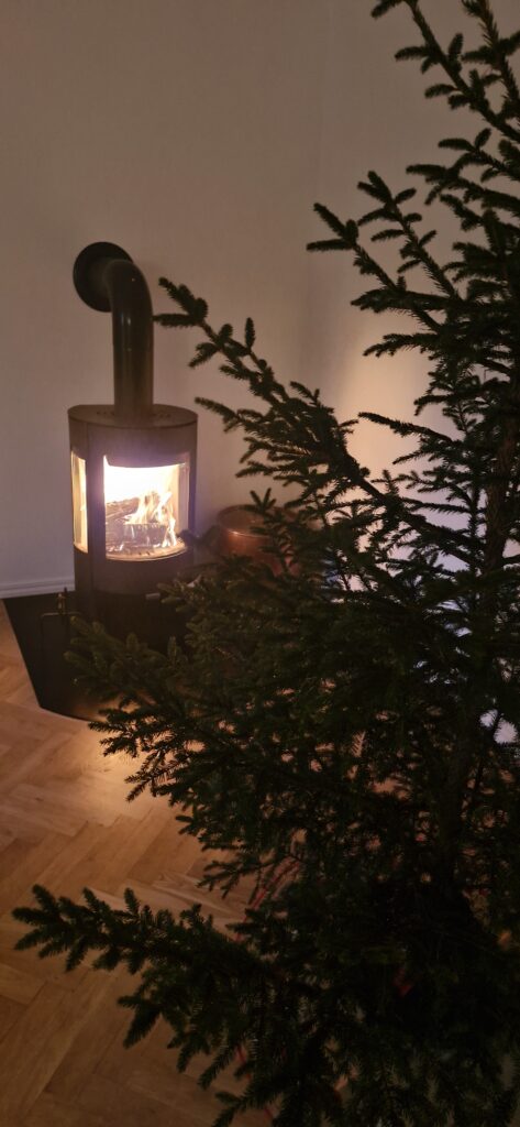21:a December. Adventsfika med nyskördad julgran.