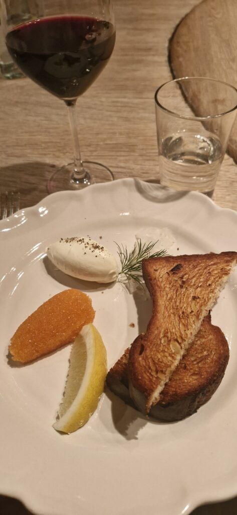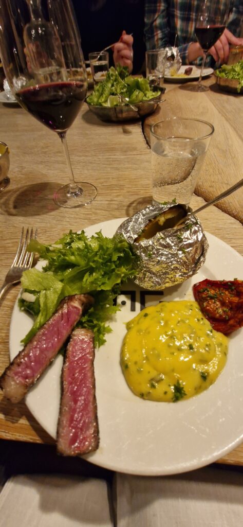 3:e December. Onsdag. Jobba. Lunch på Vineriet. Torsk med remouladsås. Det blir en lite längre promenad för att komma dit och hem.